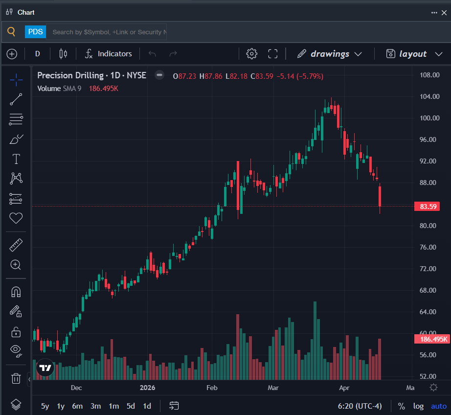 - PDS Price Action: Shares of Precision Drilling fell 5.8% to close at $83.59 on Friday.
