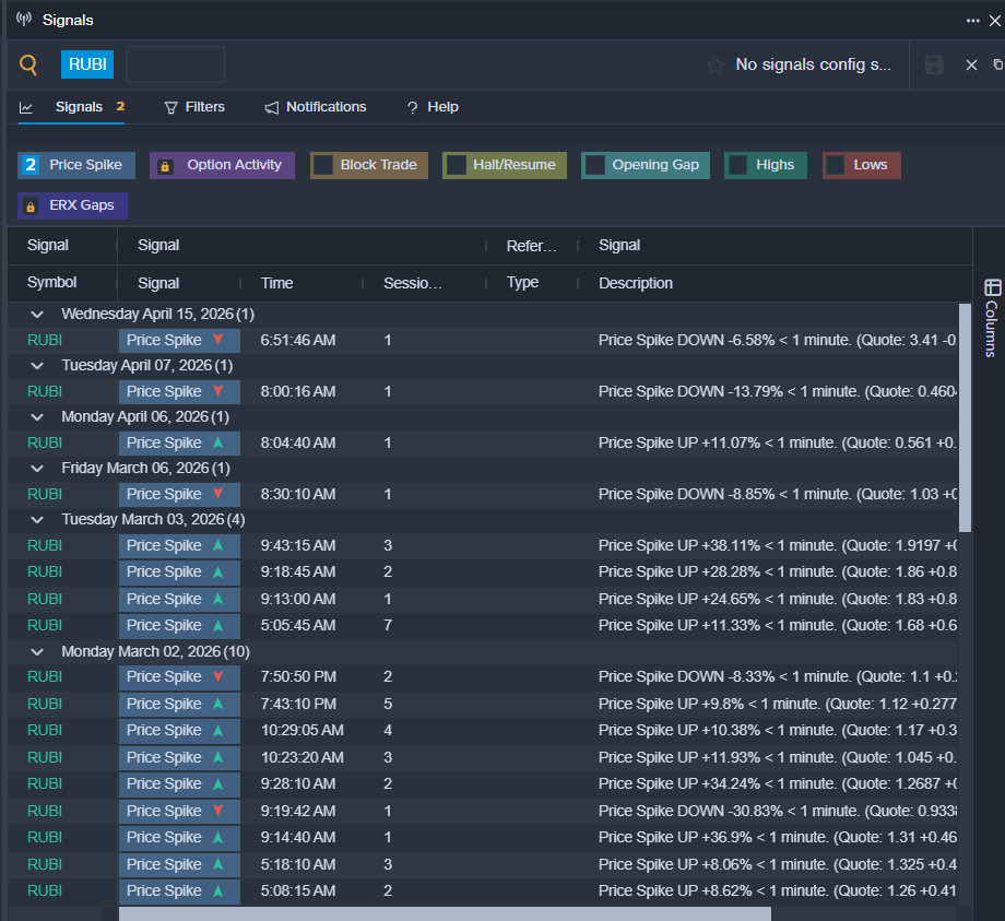 - Benzinga Pro’s signals feature notified of a potential breakout in RUBI shares.